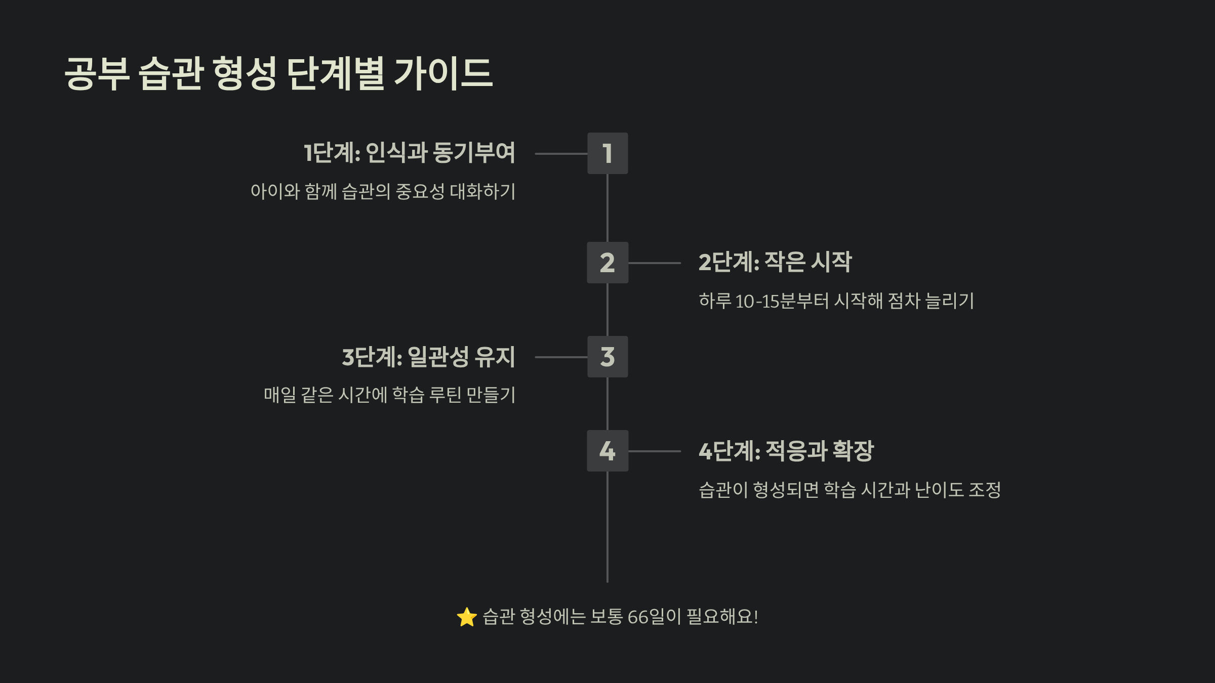 습관 형성의 과학적 원리를 이해하면 아이의 공부 습관을 효과적으로 만들 수 있어요. 런던대학교의 연구에 따르면, 새로운 습관이 자동화되기까지 평균 66일이 걸린다고 해요. 하지만 아이들의 경우 더 짧은 기간에 습관을 형성할 수 있는데, 이는 뇌의 가소성이 성인보다 높기 때문이에요. 중요한 것은 일관성과 반복이랍니다! ⏰