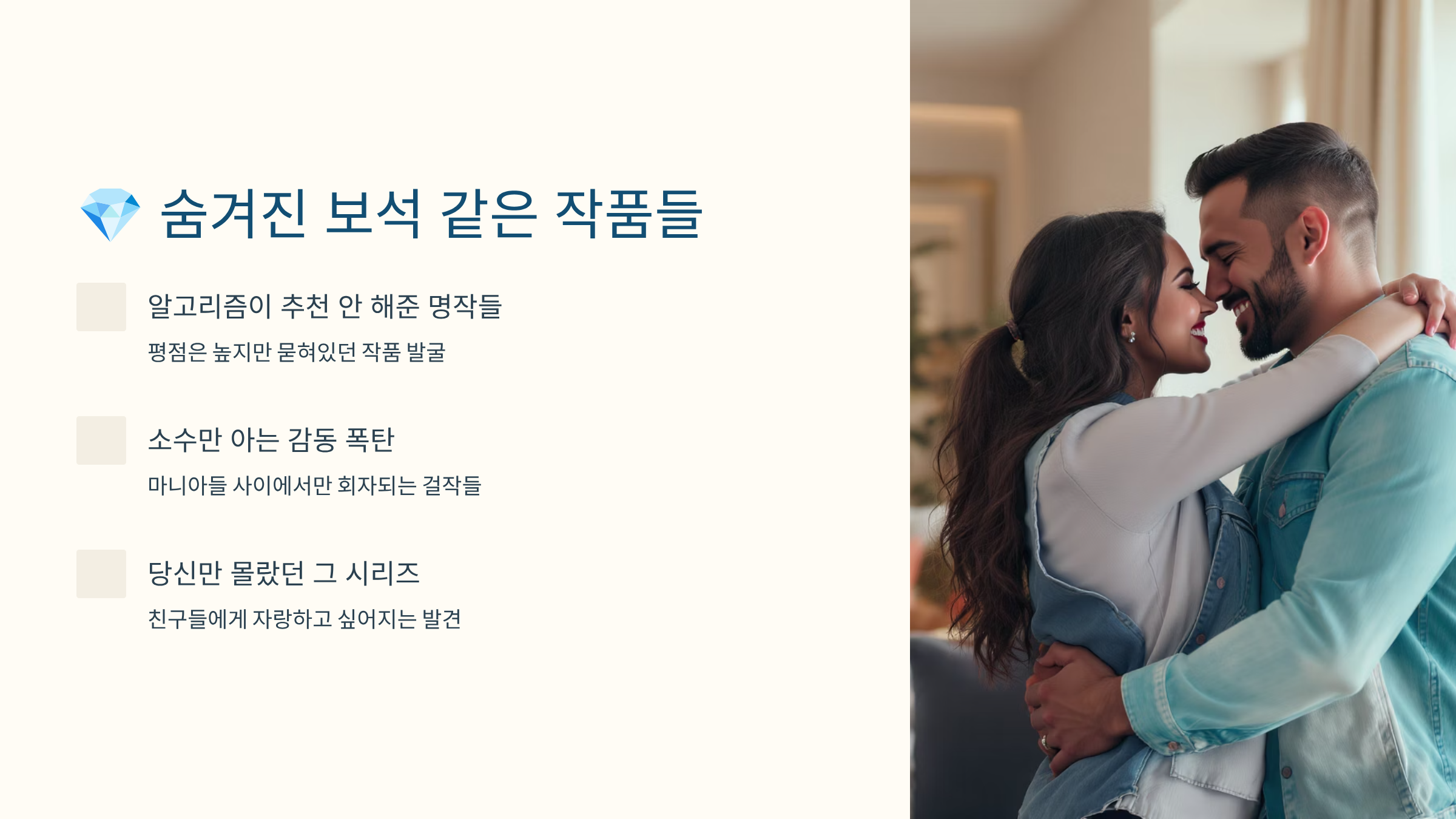 넷플릭스에는 유명하지 않지만 정말 재미있는 숨은 명작들이 많아요! 알고리즘에 잘 안 잡히거나 홍보가 부족해서 놓치기 쉬운 작품들인데, 한 번 보기 시작하면 빠져나올 수 없답니다. 오늘은 제가 직접 발굴한 숨은 보석들을 소개해드릴게요! 💎