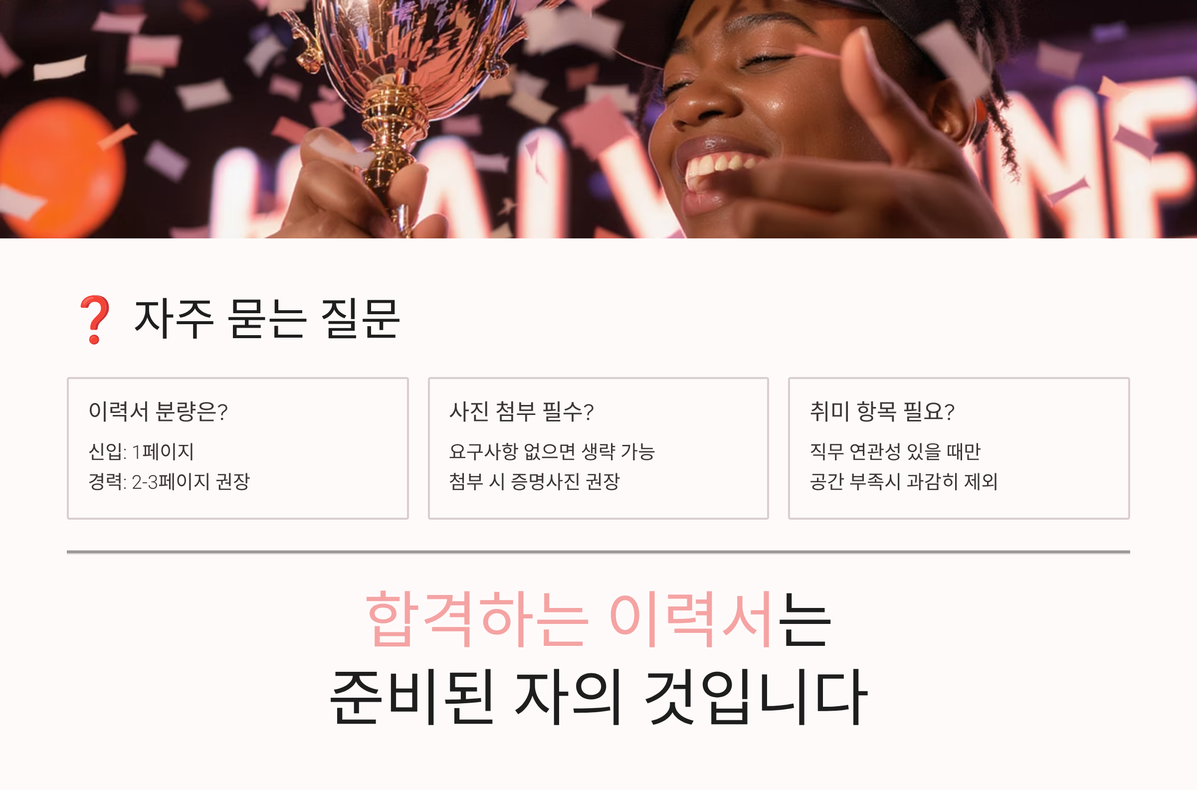 본 가이드는 일반적인 이력서 작성 팁을 제공하는 것으로, 모든 기업과 직무에 일률적으로 적용되지 않을 수 있습니다. 각 기업의 채용 기준과 문화에 따라 선호하는 이력서 스타일이 다를 수 있으니, 지원하는 회사의 특성을 충분히 파악하여 맞춤형으로 작성하시기 바랍니다. 또한 본 내용은 2025년 1월 기준으로 작성되었으며, 채용 트렌드는 지속적으로 변화할 수 있습니다.