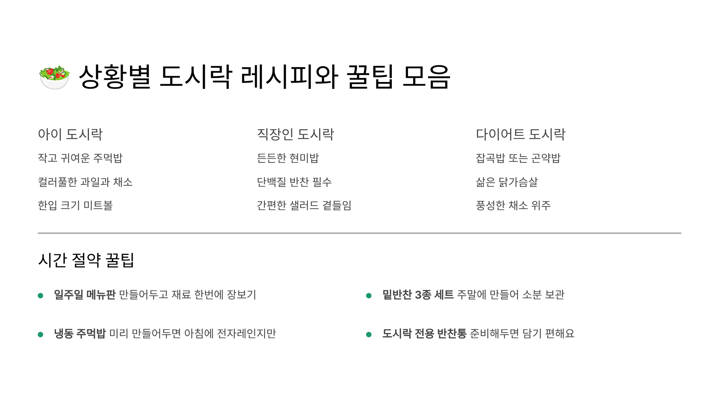 🥗 상황별 도시락 레시피와 꿀팁 모음
