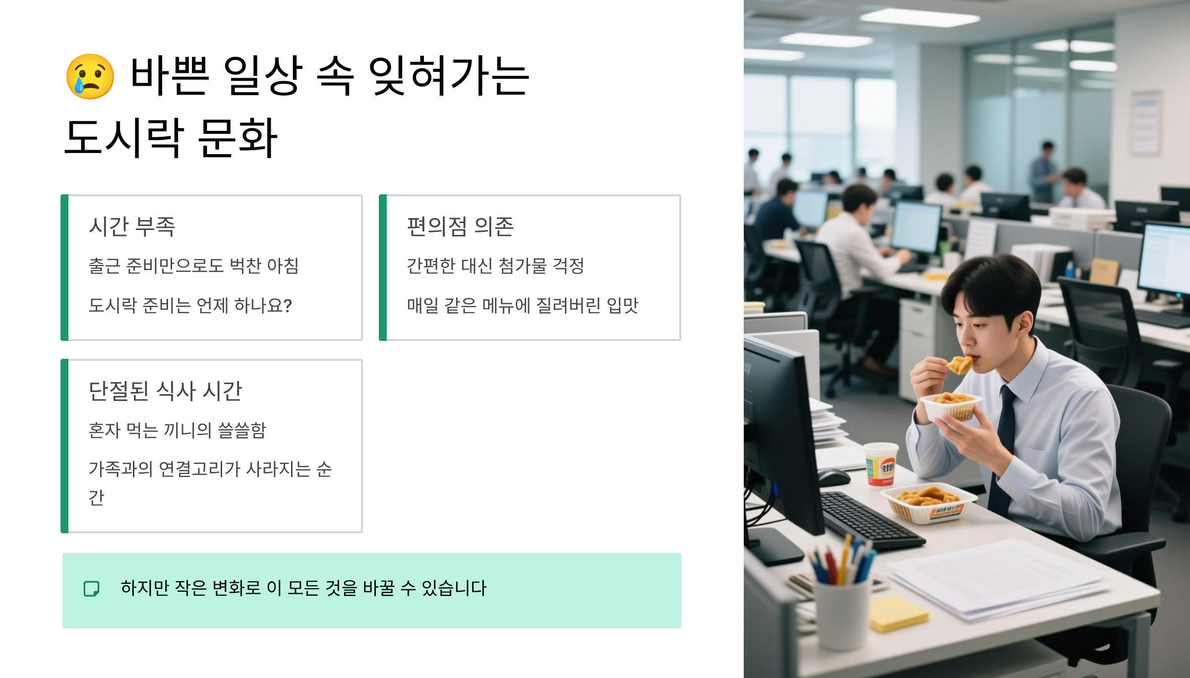 😢 바쁜 일상 속 잊혀가는 도시락 문화