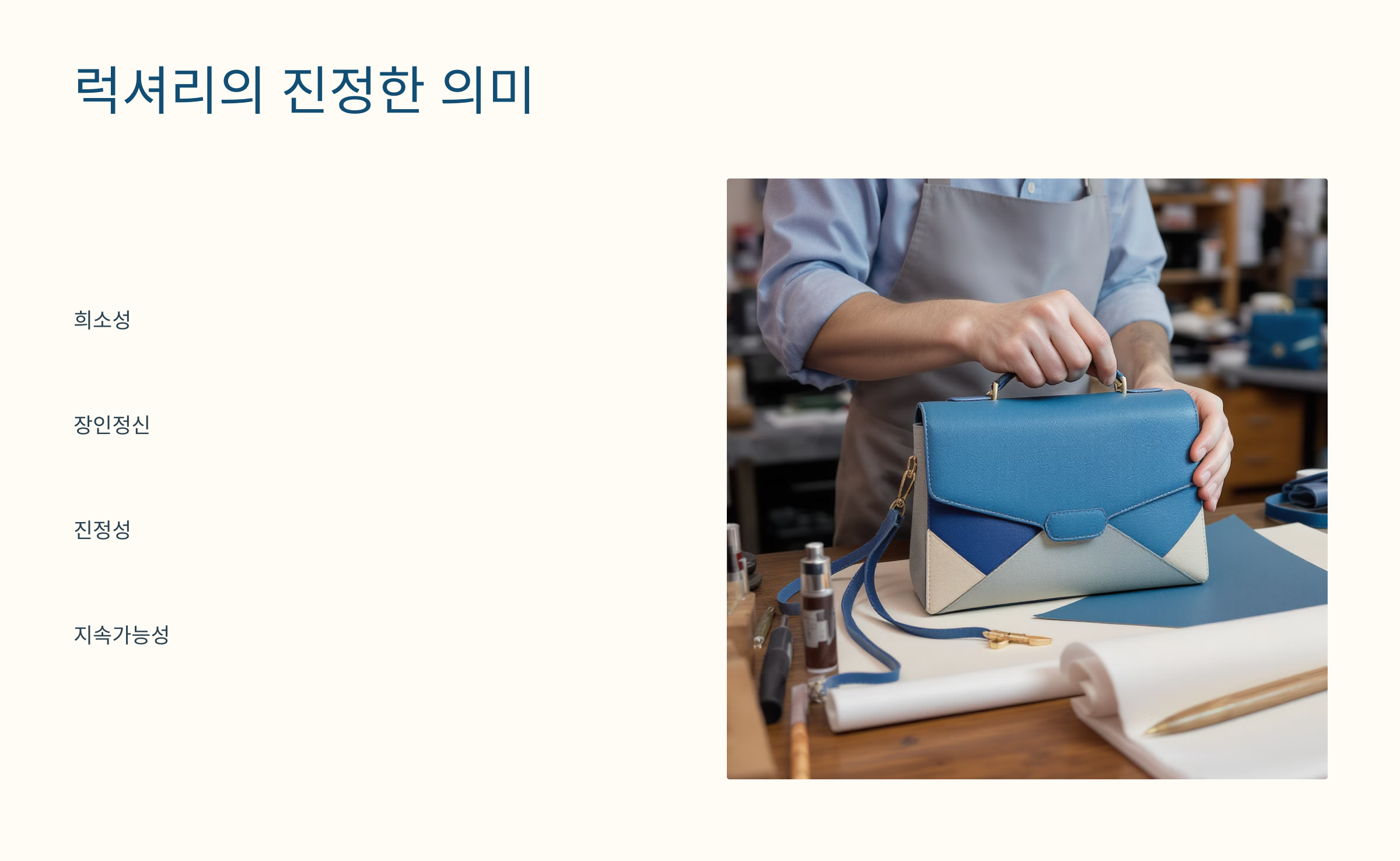| 장인정신 | 높음 | 수작업 비중, 제작 시간, 기술력 |