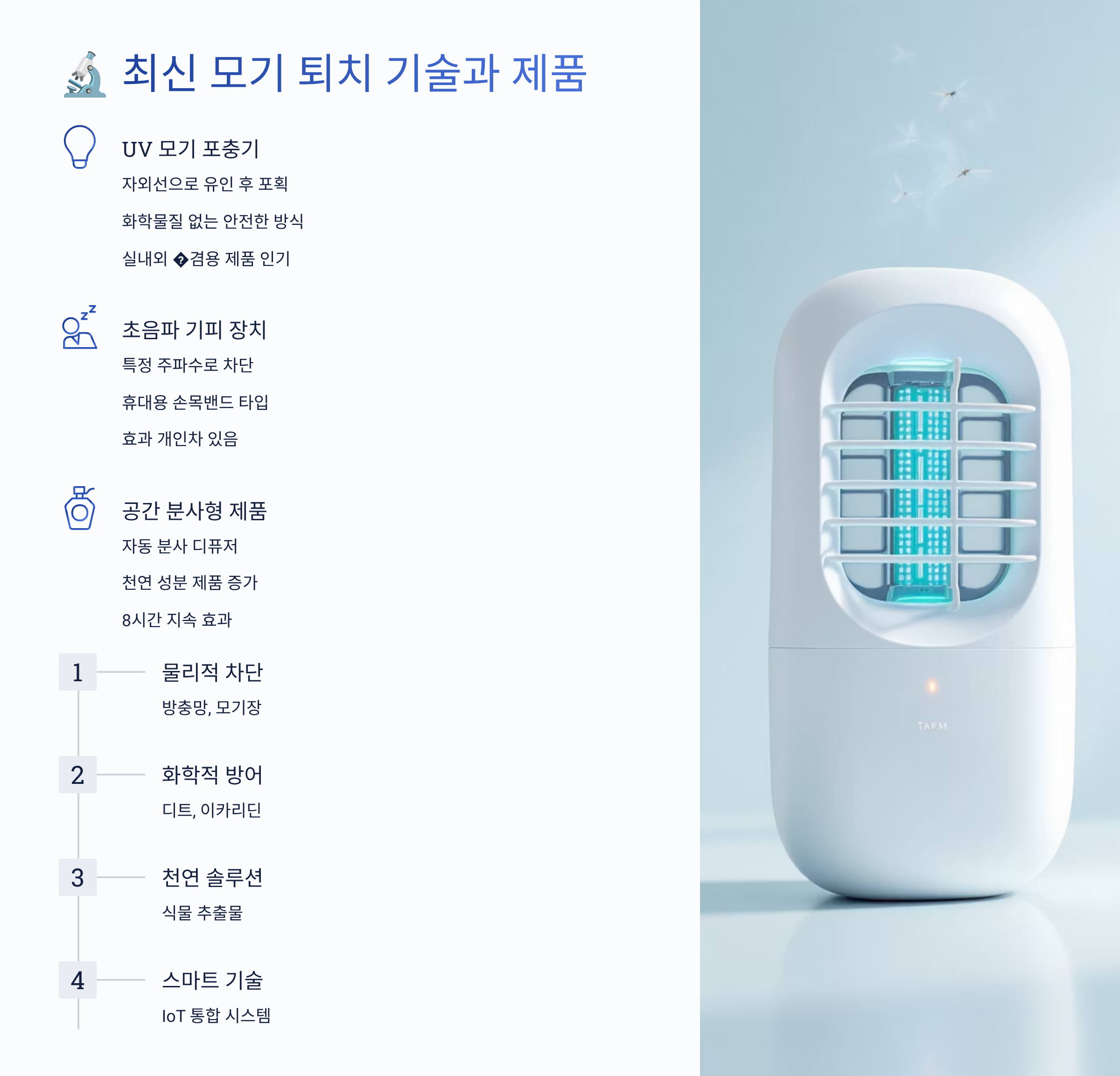 과학 기술의 발전으로 모기 퇴치 방법도 계속 진화하고 있어요. 초음파 모기 퇴치기는 모기가 싫어하는 주파수의 소리를 내서 모기