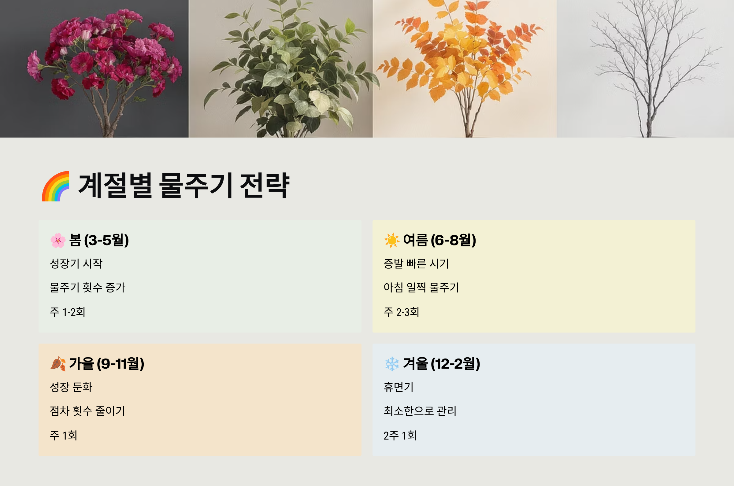 | 계절 | 물주기 빈도 | 특별 관리 |