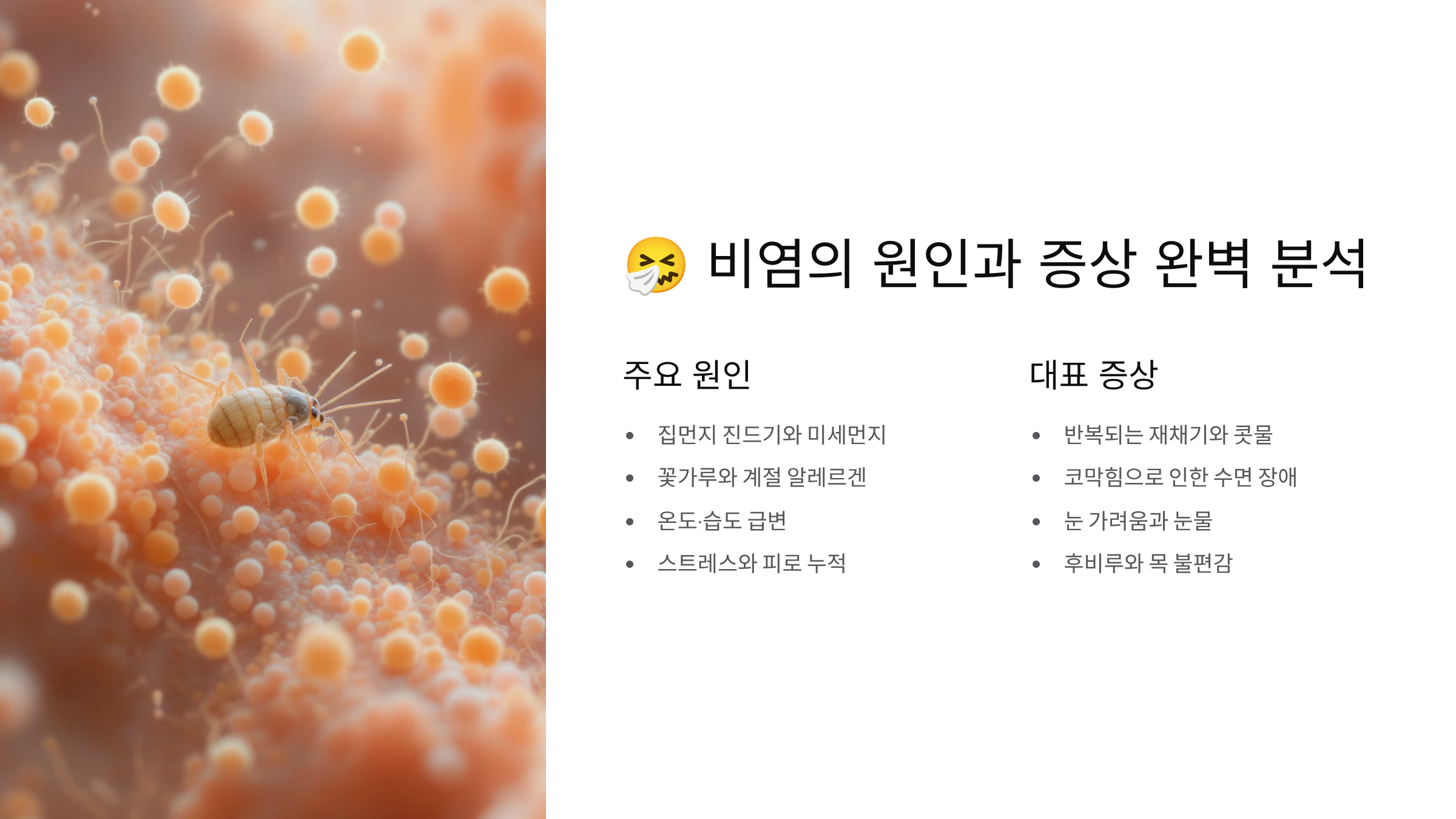 비염은 전 세계 인구의 약 30%가 겪고 있는 흔한 질환이에요. 콧물, 재채기, 코막힘으로 일상생활이 불편하신 분들을 위해 실제 환자들이 검증한 생존 꿀팁을 모았어요. 저도 10년 넘게 비염과 함께 살아오면서 터득한 노하우를 공유하려고 해요.