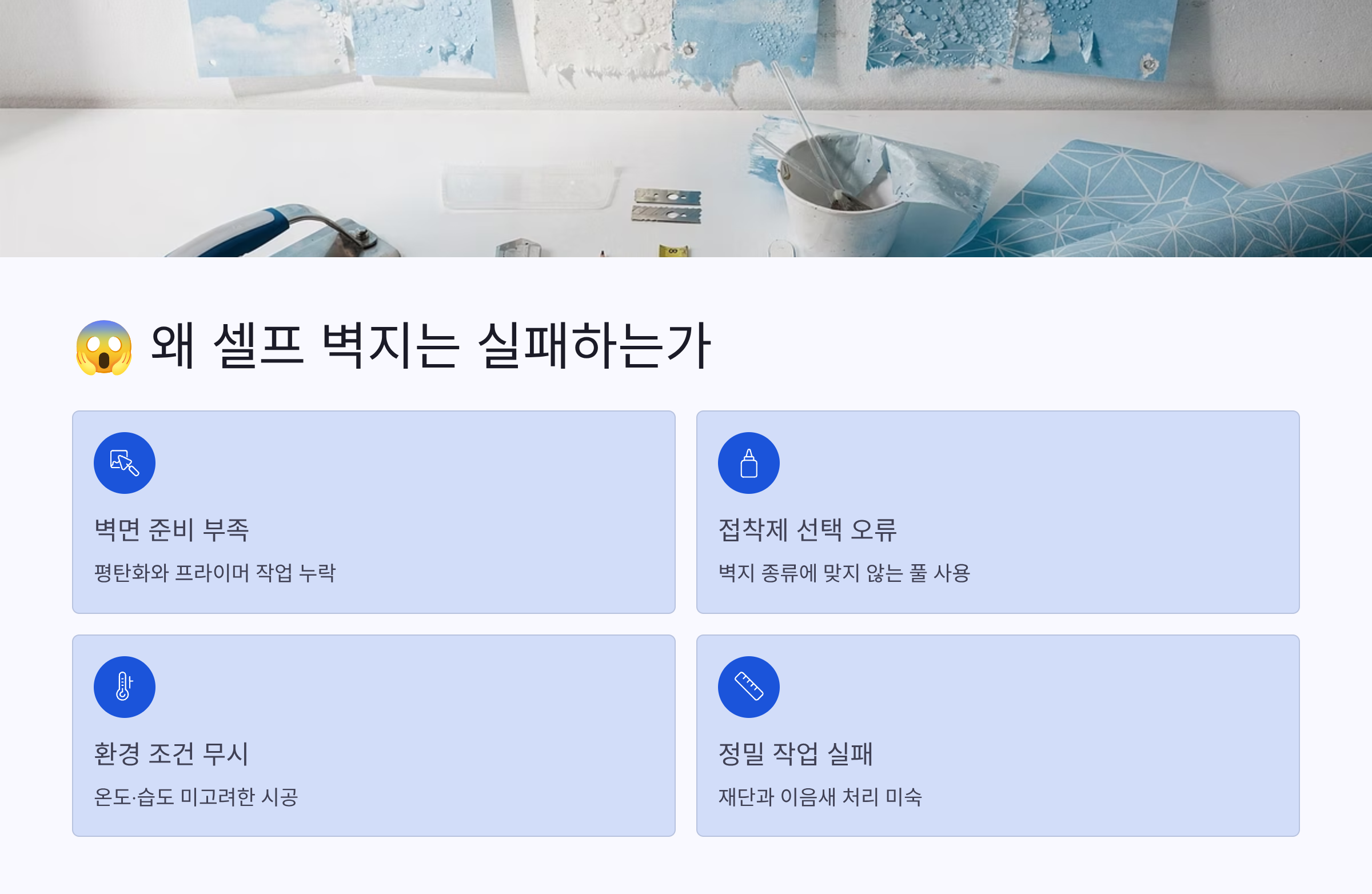 많은 분들이 유튜브 영상만 보고 쉽게 생각하시다가 실패하는 경우가 정말 많아요. 실제로 2024년 인테리어 커뮤니티 조사에 따르면 셀프 벽지 시도자의 73%가 첫 시도에서 실패를 경험한다고 해요. 이 글을 통해 실패한 벽지를 완벽하게 복구하는 방법과 다시는 실패하지 않을 노하우까지 모두 알려드릴게요!