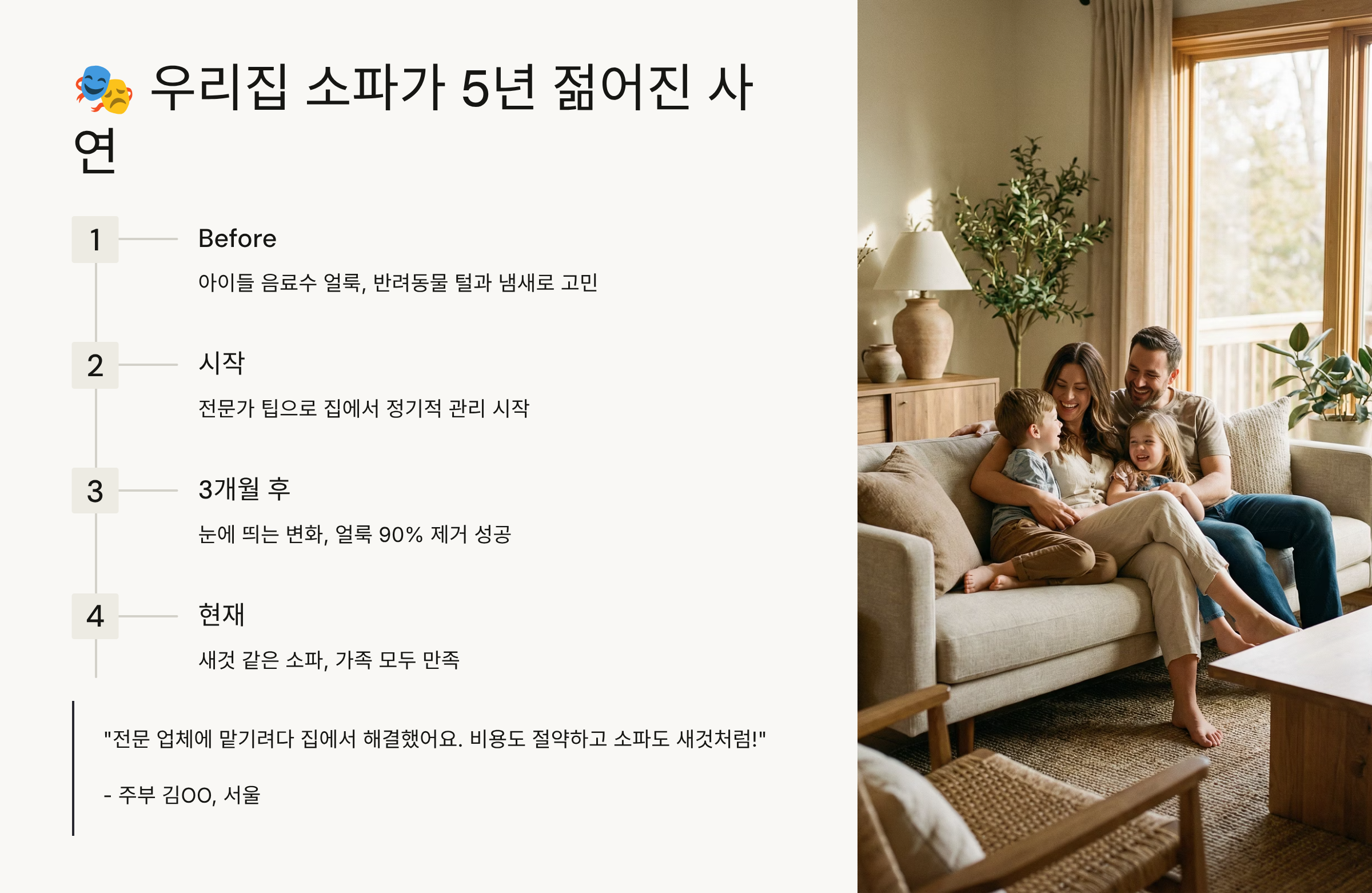 ✅ 경제적 절약: 새 소파 구매 비용 200만 원 절약, 전문 청소 비용 35만 원 절약