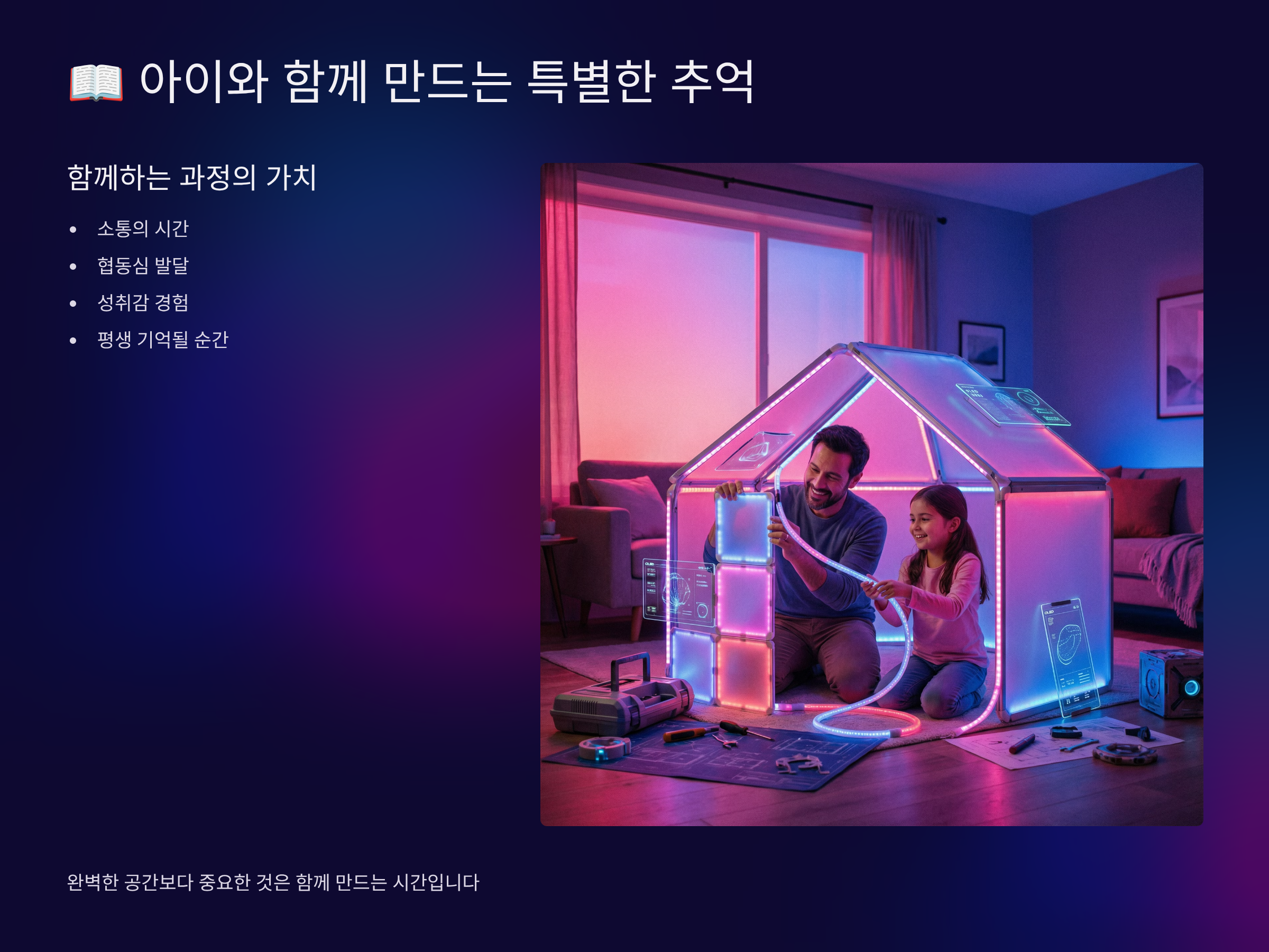 이 모든 사례에서 공통적으로 나타난 것은 '과정의 즐거움'이에요. 부모와 아이가 함께 고민하고, 만들고, 꾸미는 그 시간 자체가 소중한 추억이 되었다고 모두가 입을 모아 말해요. 결과물도 중요하지만, 그 과정에서 나누는 대화와 웃음이 진짜 보물이죠! 💝