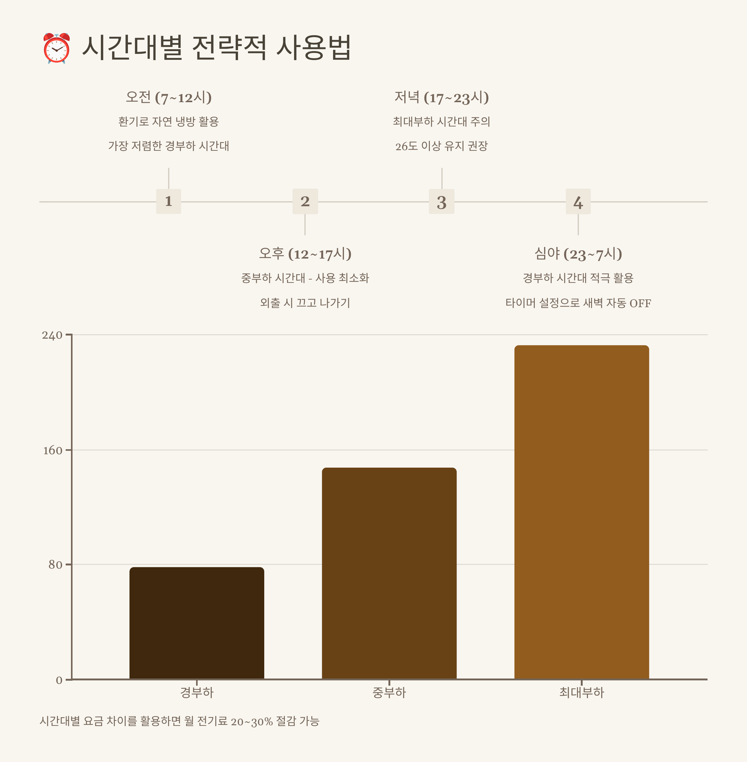 전기요금은 시간대에 따라 달라진다는 사실, 알고 계신가요? 한전의 시간대별 요금제를 활용하면 전기료를 크게 절약할 수 있어요. 심야시간(23시~9시)에는 요금이 최대 60% 저렴해요. 이 시간대를 활용해서 집을 미리 시원하게 만들어두면 낮 시간 에어컨 사용을 줄일 수 있답니다! ⏰