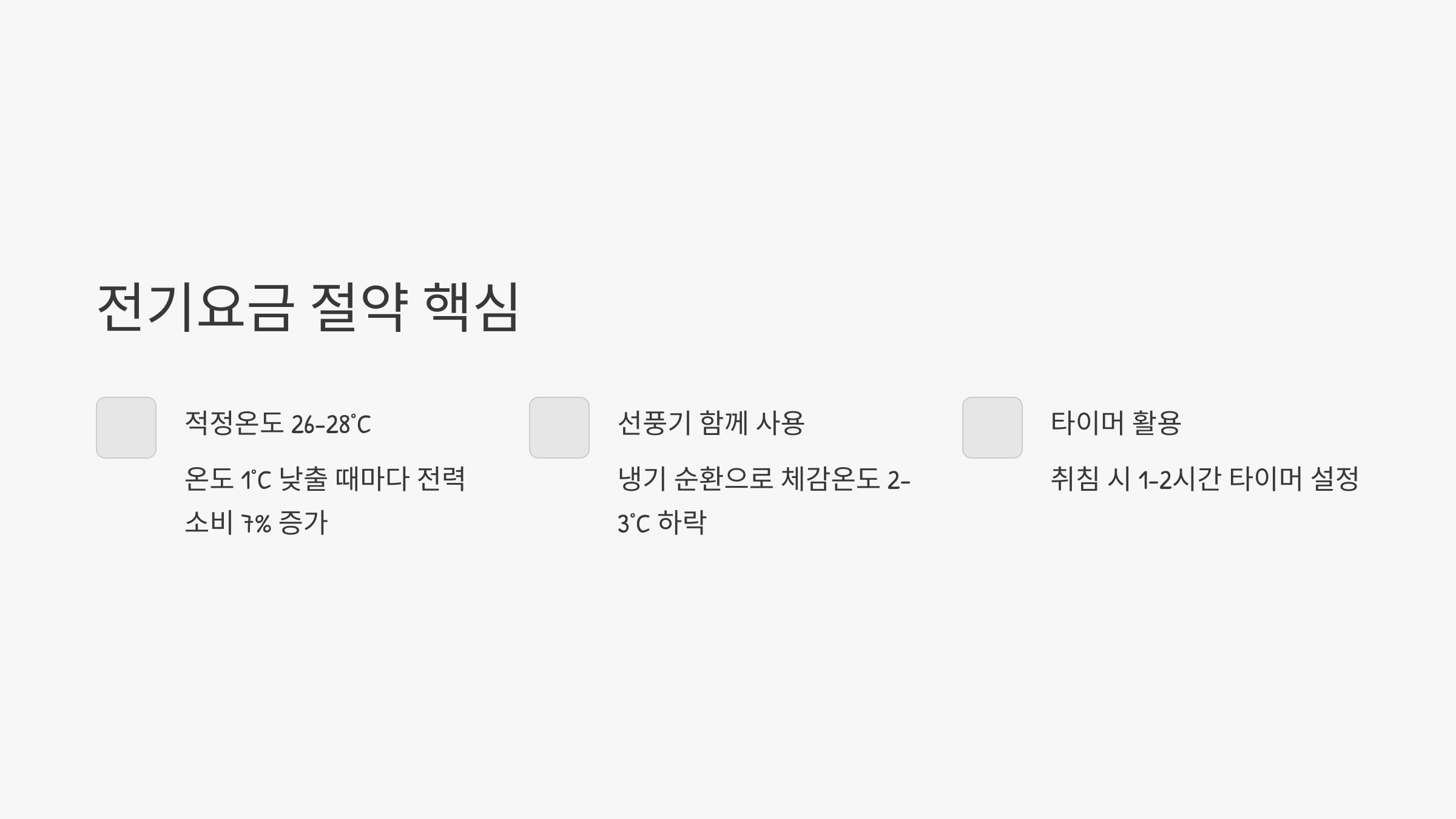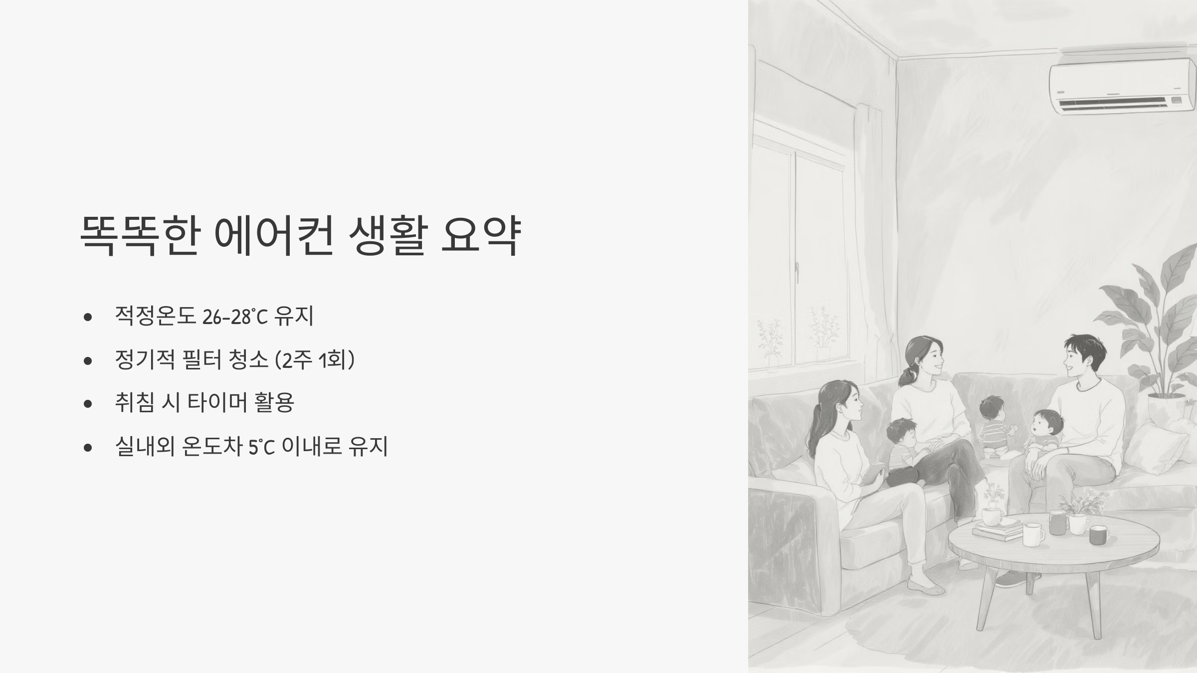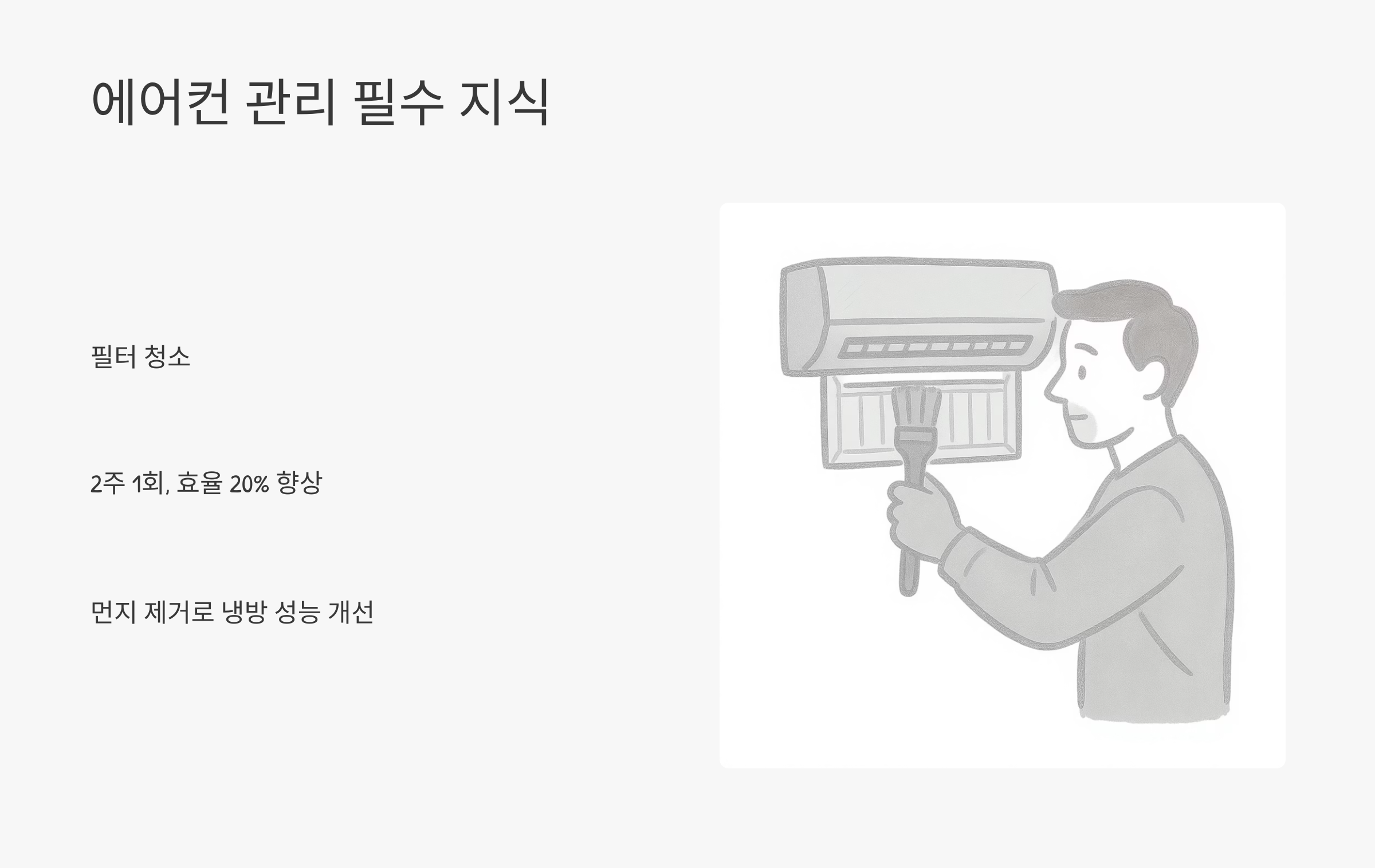 A1. 적정 온도 26~27도 유지, 필터 청소 2주마다, 선풍기 병행 사용이 가장 효과적이에요. 이 세 가지만 지켜도 전기요금을 40% 이상 절약할 수 있답니다. 특히 실내외 온도차를 5~6도로 유지하는 것이 핵심이에요.