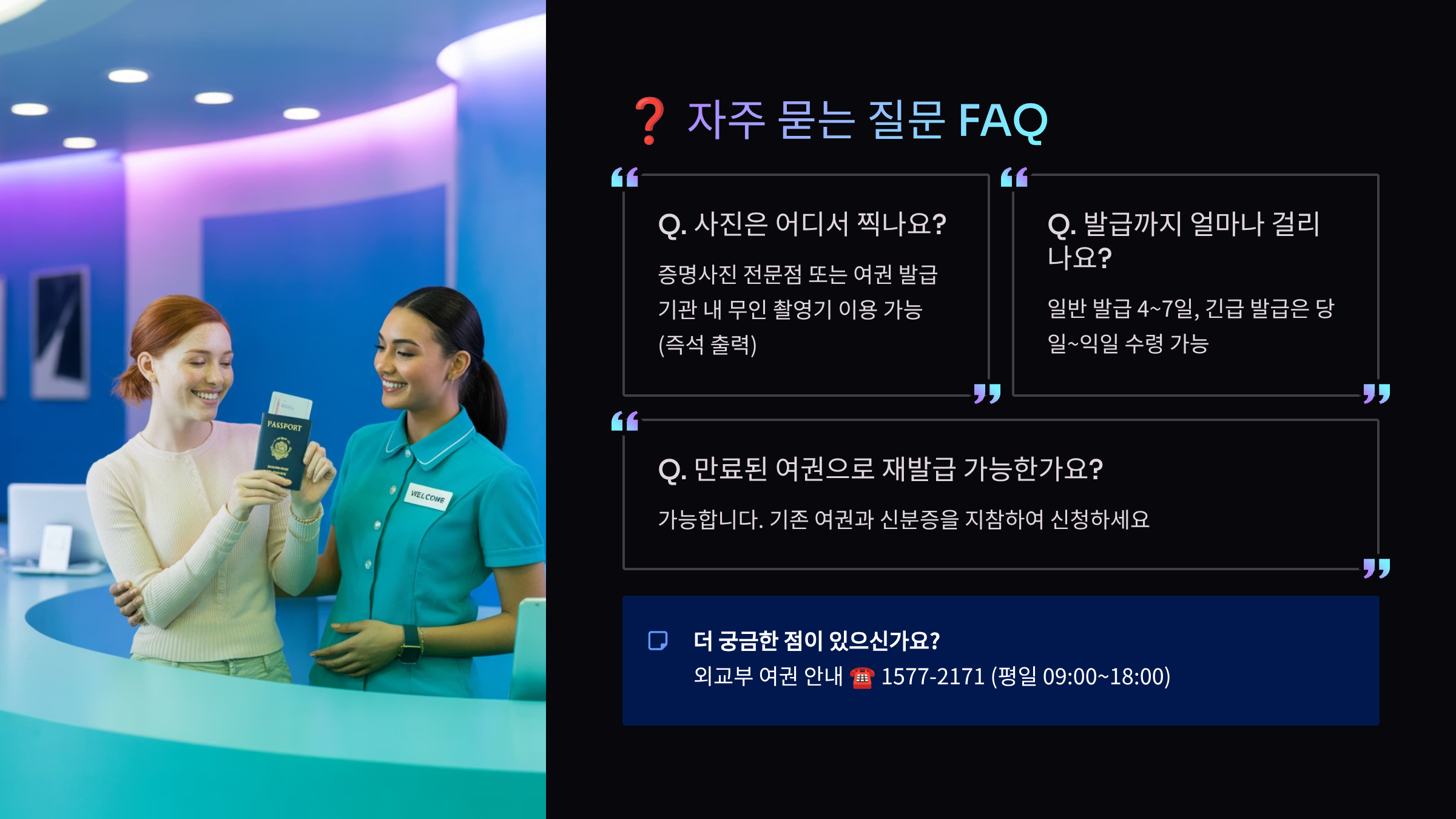 본 글의 정보는 2025년 1월 기준이며, 여권 발급 정책과 수수료는 변경될 수 있습니다. 정확한 정보는 외교부 여권안내 홈페이지(passport.go.kr)나 거주지 구청에 확인하시기 바랍니다. 개인의 상황에 따라 필요 서류와 처리 기간이 달라질 수 있으니 반드시 사전 확인 후 방문하세요.