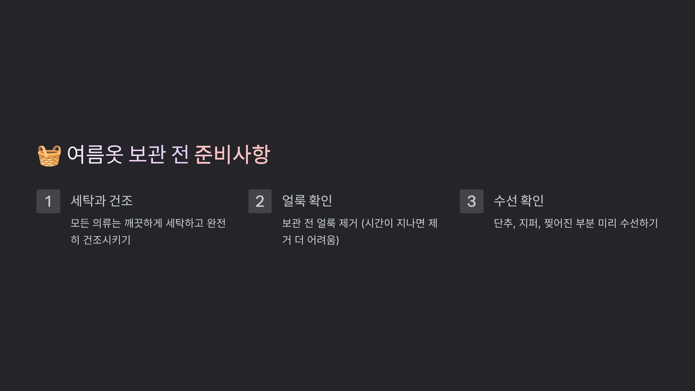 여름옷을 보관하기 전에 가장 중요한 건 깨끗하게 세탁하는 거예요. 땀이나 먼지가 묻은 채로 보관하면 얼룩이 생기거나 냄새가 날 수 있어요. 특히 흰색 옷은 황변의 원인이 되기도 하죠. 세탁 후에는 완전히 건조해야 곰팡이 걱정이 없답니다. 🧼