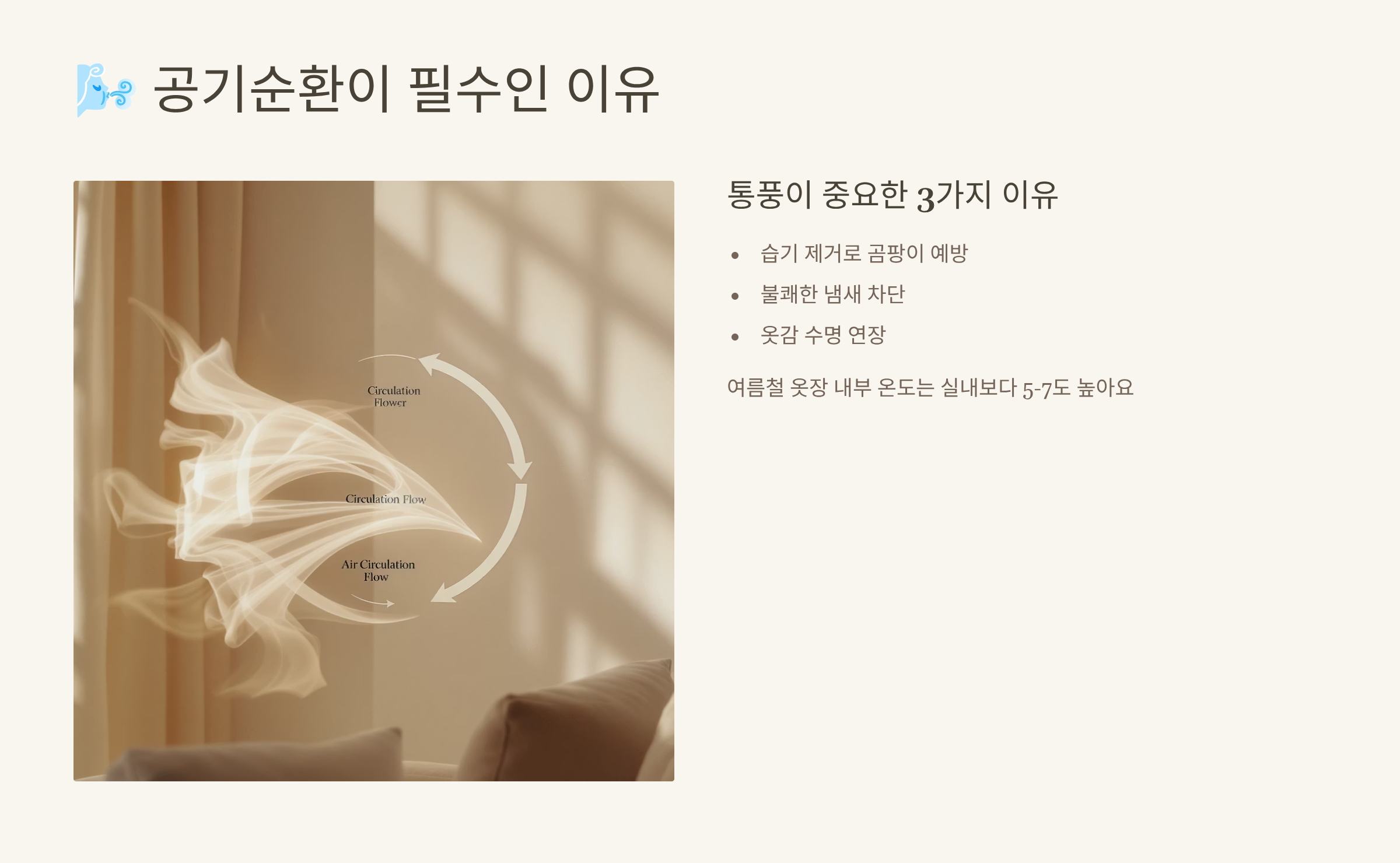 여름철 옷장 관리는 단순한 청소가 아니라 건강하고 쾌적한 생활을 위한 필수 과정이에요. 작은 바람 한 줄기가 만드는 큰 변화를 경험해 보세요! 🌬️💚