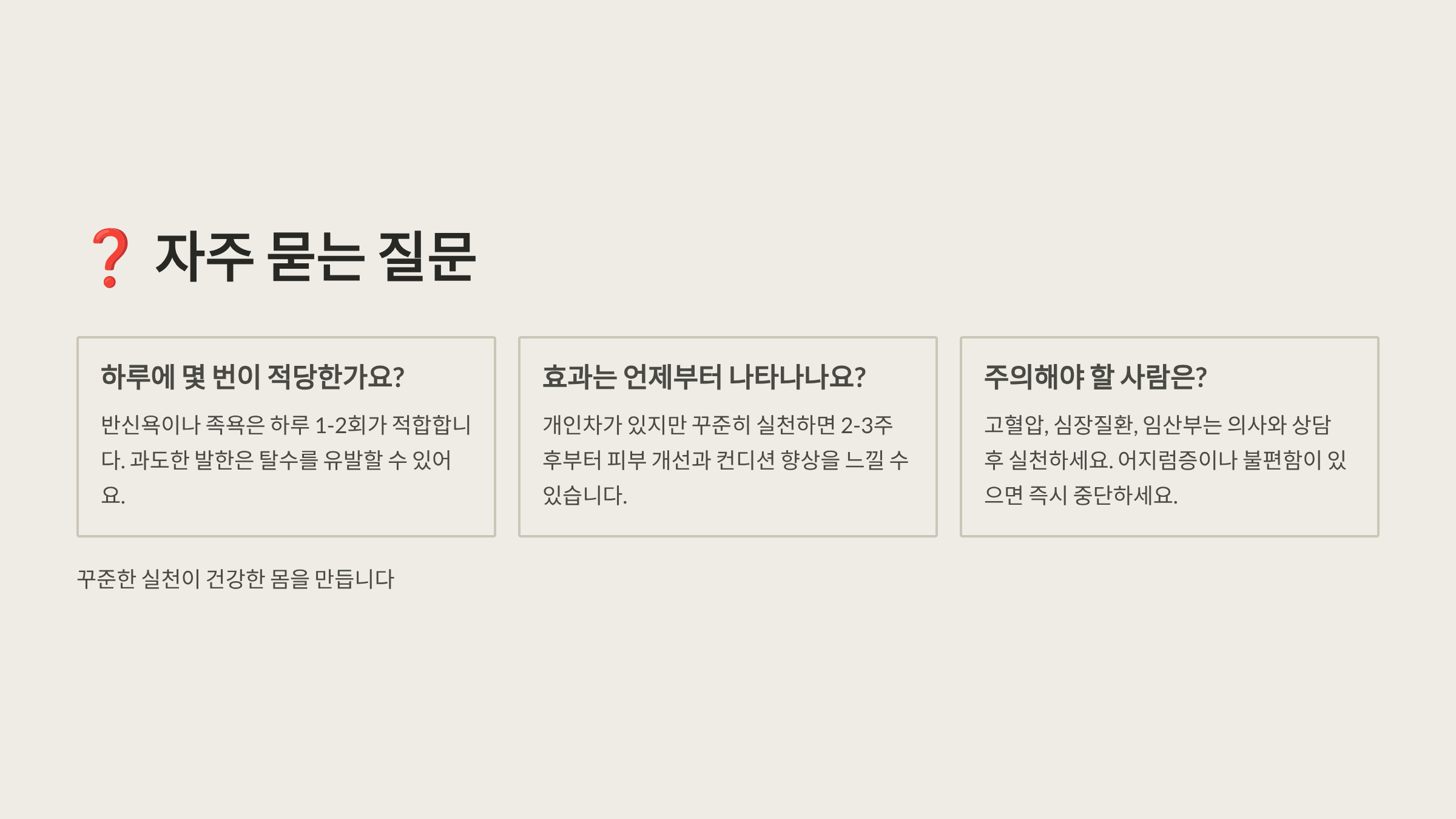 | 취침 전 | 37~38도 | 엡솜솔트 | 근육 이완 |