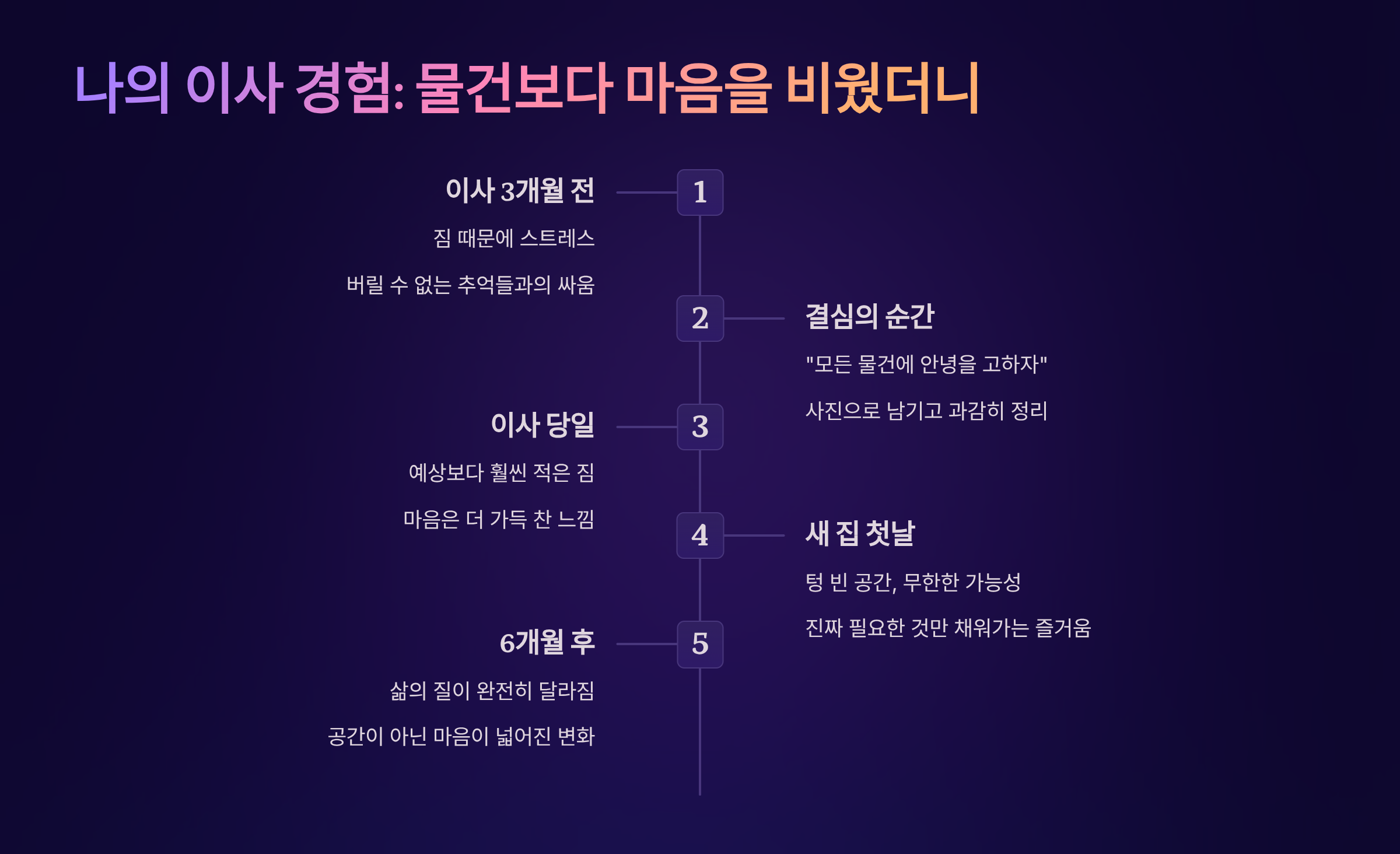 이 사례들의 공통점은 이사를 단순히 짐을 옮기는 행위가 아니라 삶을 재정비하는 기회로 삼았다는 거예요. 물건을 정리하면서 자연스럽게 자기 자신과 마주했고, 그 과정에서 버려야 할 것들을 발견했죠. 이사는 이렇게 활용하면 인생의 큰 전환점이 될 수 있어요.