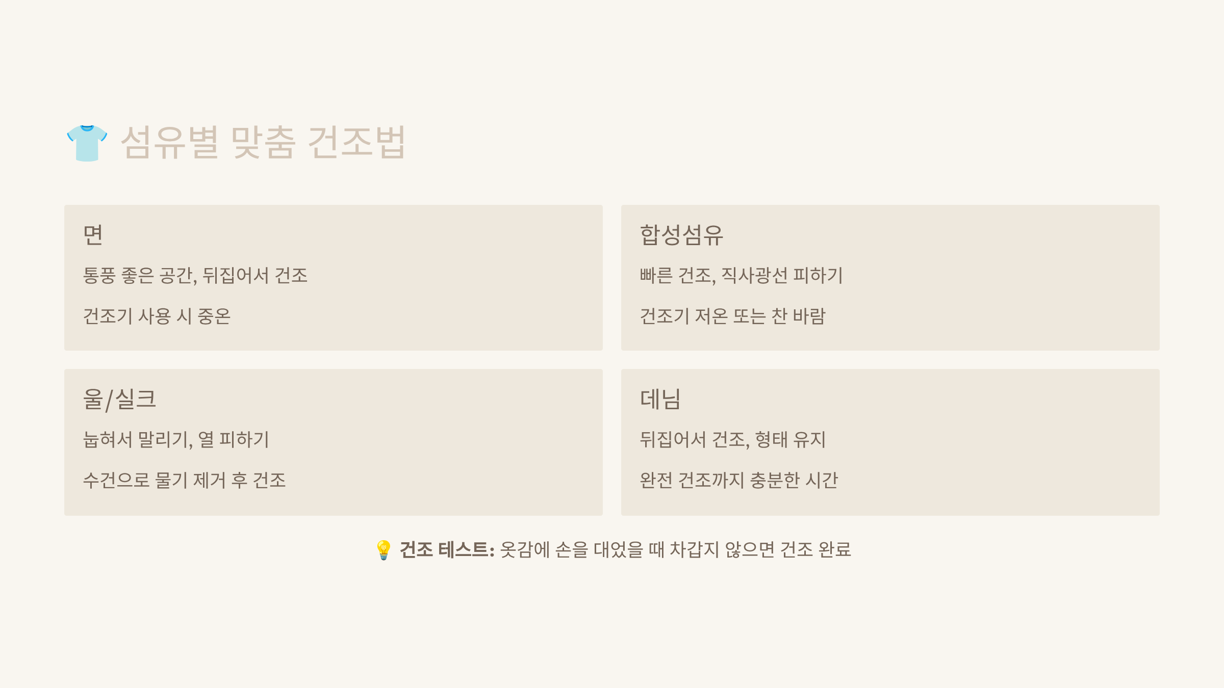 👕 섬유별 맞춤 건조법