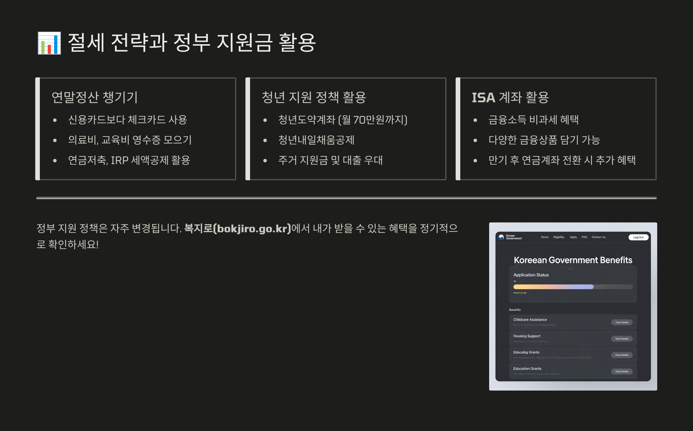 📊 절세 전략과 정부 지원금 활용