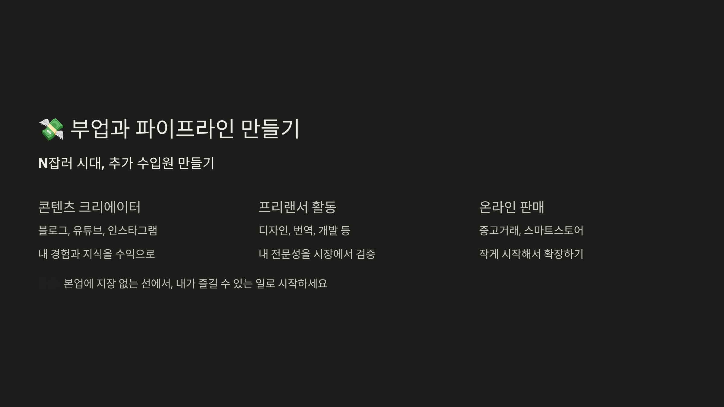 💸 부업과 파이프라인 만들기