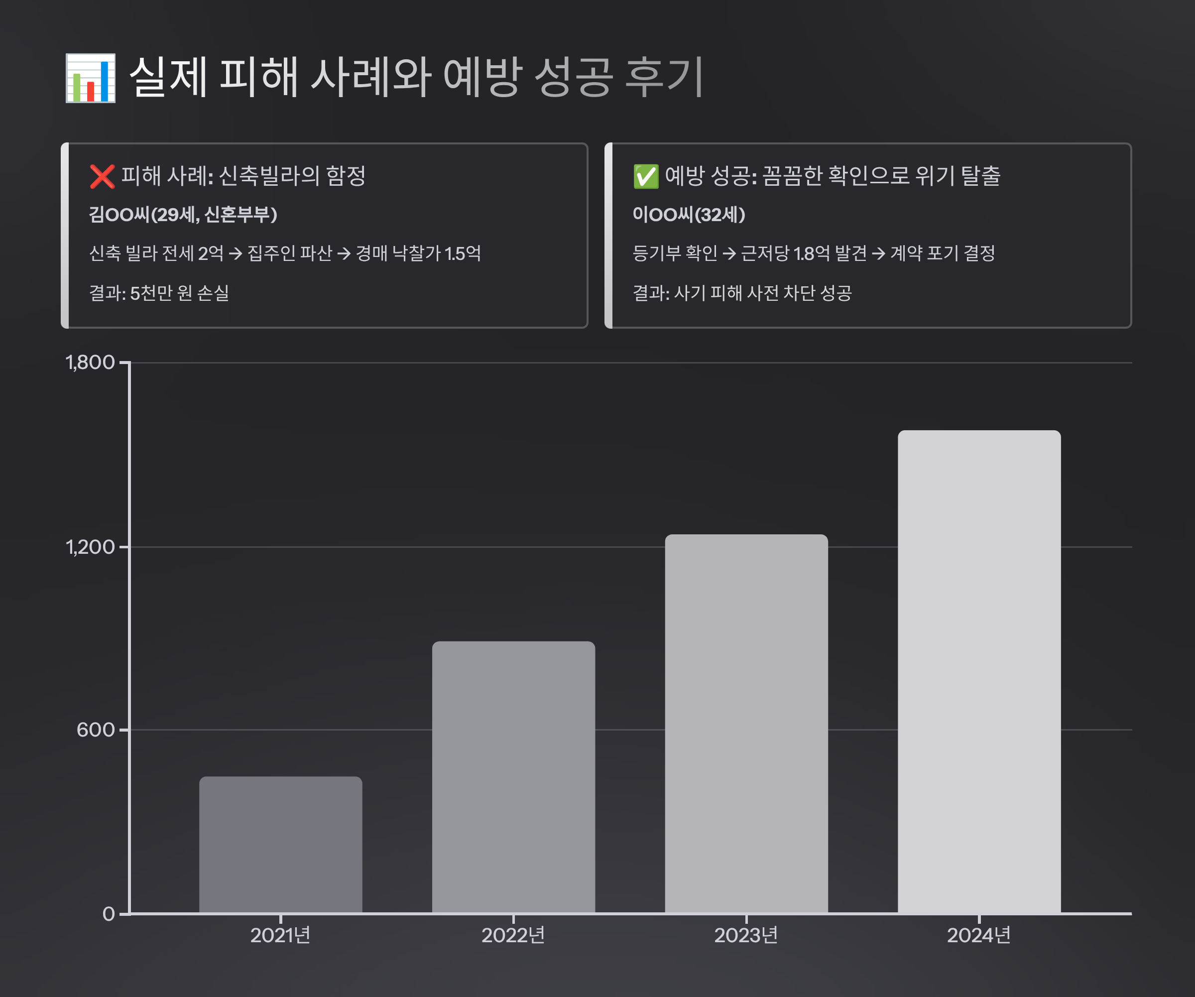 실제 전세 사기 피해 사례를 살펴보면 어떤 점을 주의해야 하는지 더 잘 알 수 있어요. 인천 미추홀구에서 발생한 대규모 전세 사기 사건은 1,000명이 넘는 피해자를 낳았어요. 한 건축업자가 빌라를 여러 채 지은 뒤 시세보다 높은 전세가로 세입자를 구하고 대출금을 갚지 않아 경매로 넘어간 사건이에요.