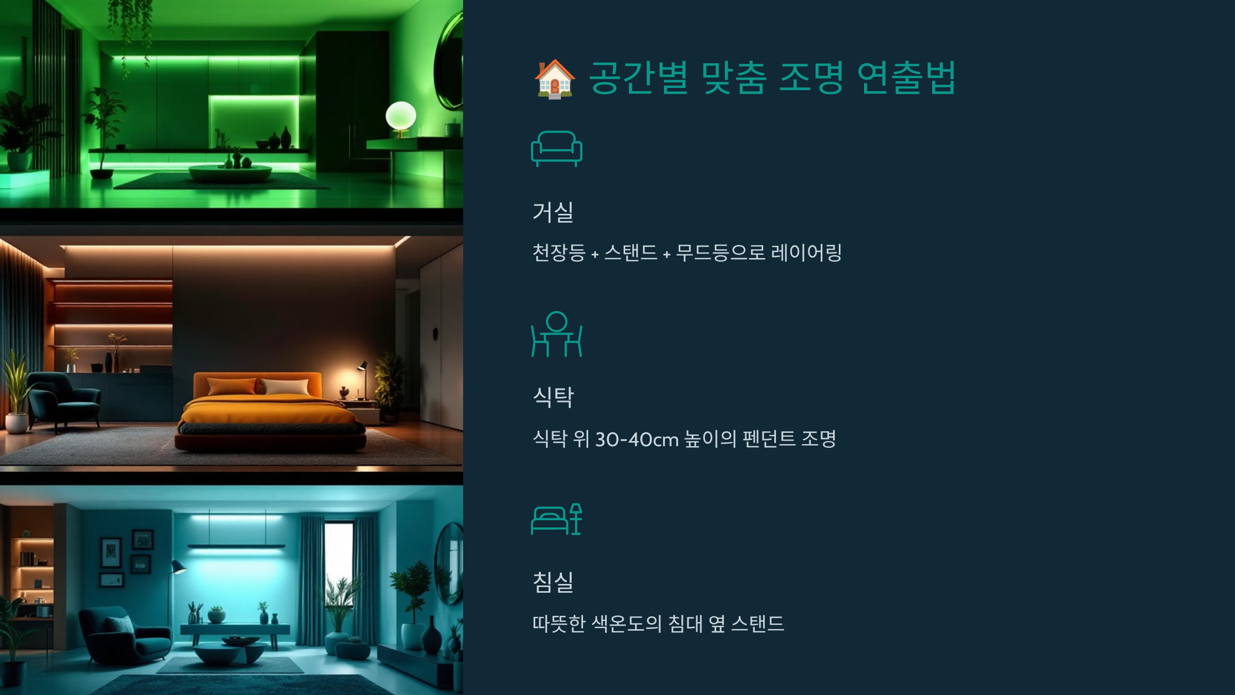 | 조명 유형 | 주요 기능 | 추천 위치 |