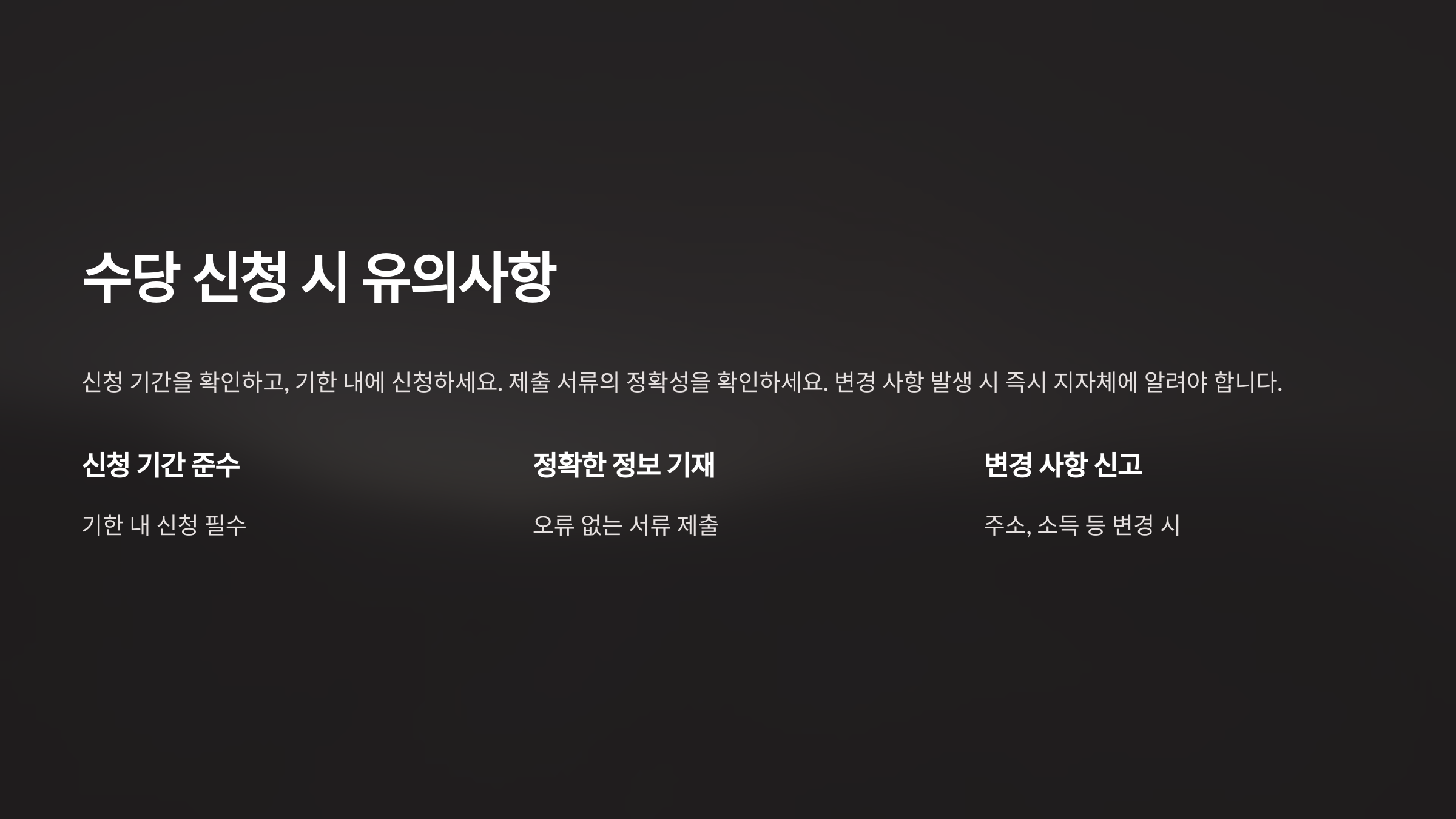 조부모 돌봄 수당을 신청할 때 몇 가지 유의해야 할 점이 있어요. 지원 대상이 되더라도 정해진 절차를 따르지 않으면 혜택을 받지 못할 수도 있어요.
