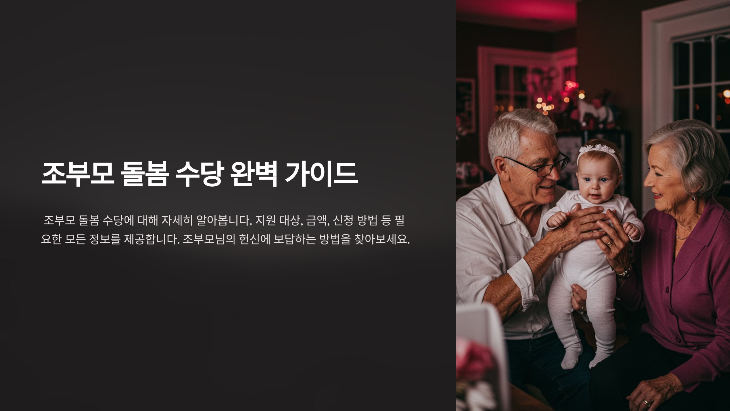 조부모 돌봄 수당은 부모 대신 조부모가 손주를 양육할 때 정부가 일정 금액을 지원하는 제도예요. 맞벌이 가정이 증가하면서 조부모의 돌봄 역할이 커졌고, 이에 대한 보상 차원에서 도입되었어요.