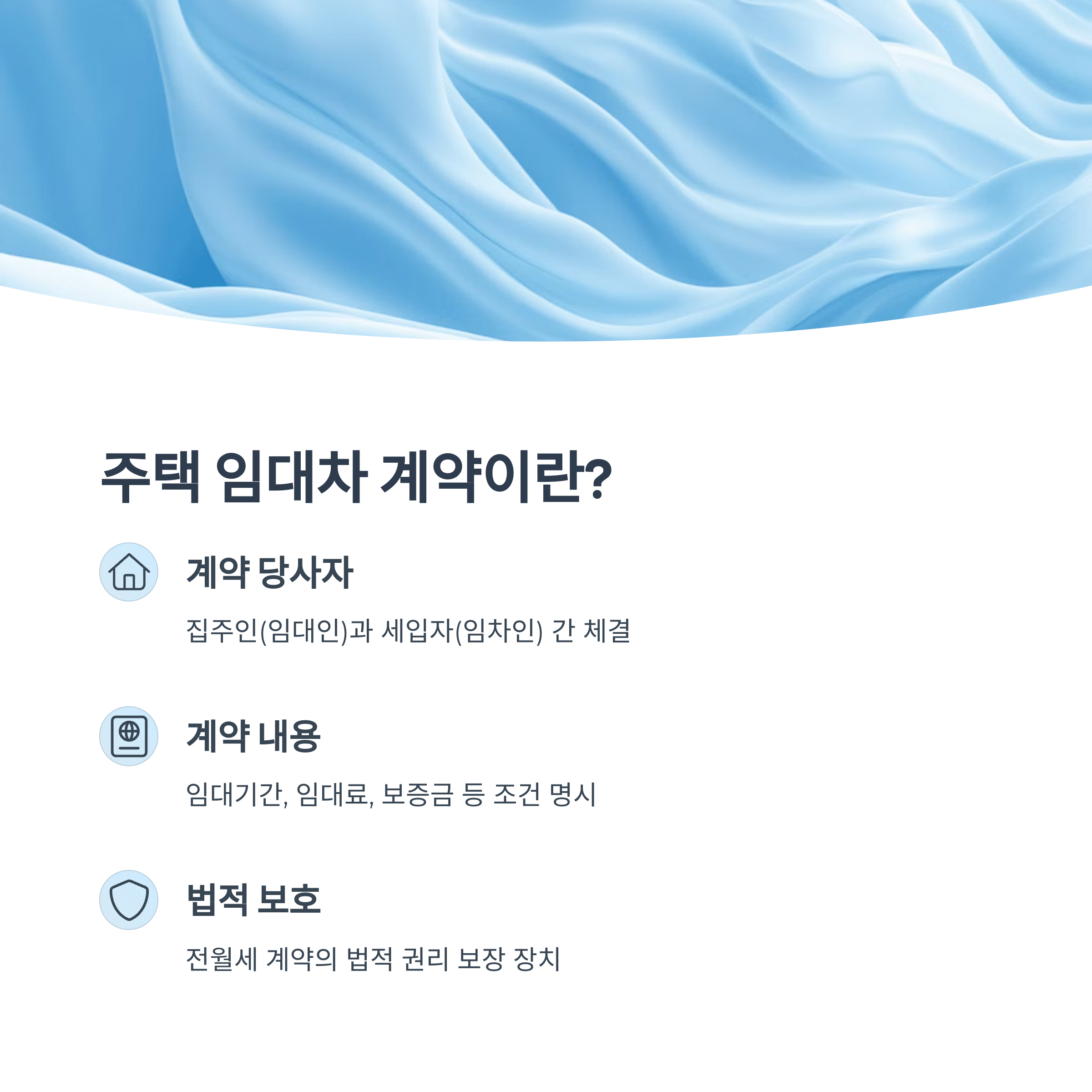 주택 임대차 계약은 누군가가 집을 가지고 있고, 다른 사람이 그 집을 일정 기간 동안 살기 위해 보증금이나 월세를 내는 약속을 한 경우를 말해요. 흔히 월세, 전세, 반전세 모두 이 범주에 속해요.