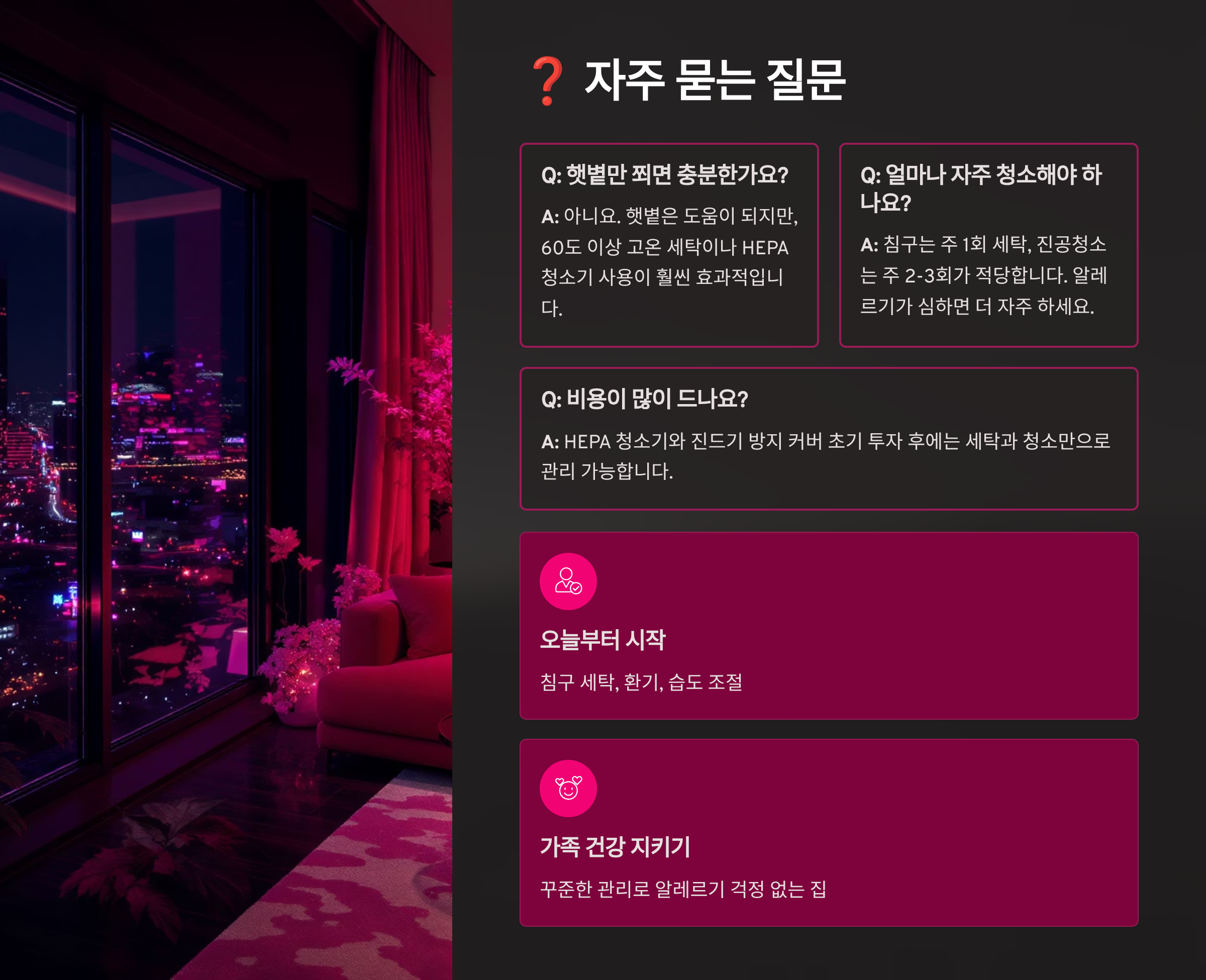 🌈 삶의 질 개선: 알레르기 걱정 없이 편안하고 행복한 일상을 누릴 수 있어요