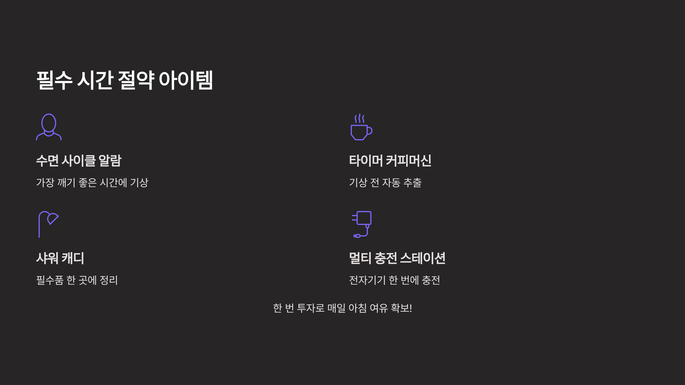 시간을 돈으로 살 수 있다면 얼마나 좋을까요? 실제로 몇 가지 스마트한 아이템들을 활용하면 시간을 '구매'하는 효과를 볼 수 있어요! 제가 직접 사용해 보고 출근 준비 시간을 획기적으로 줄여준 필수 아이템들을 소개해드릴게요. 초기 투자 비용이 들더라도 장기적으로 보면 충분히 가치 있는 투자랍니다! ⚡