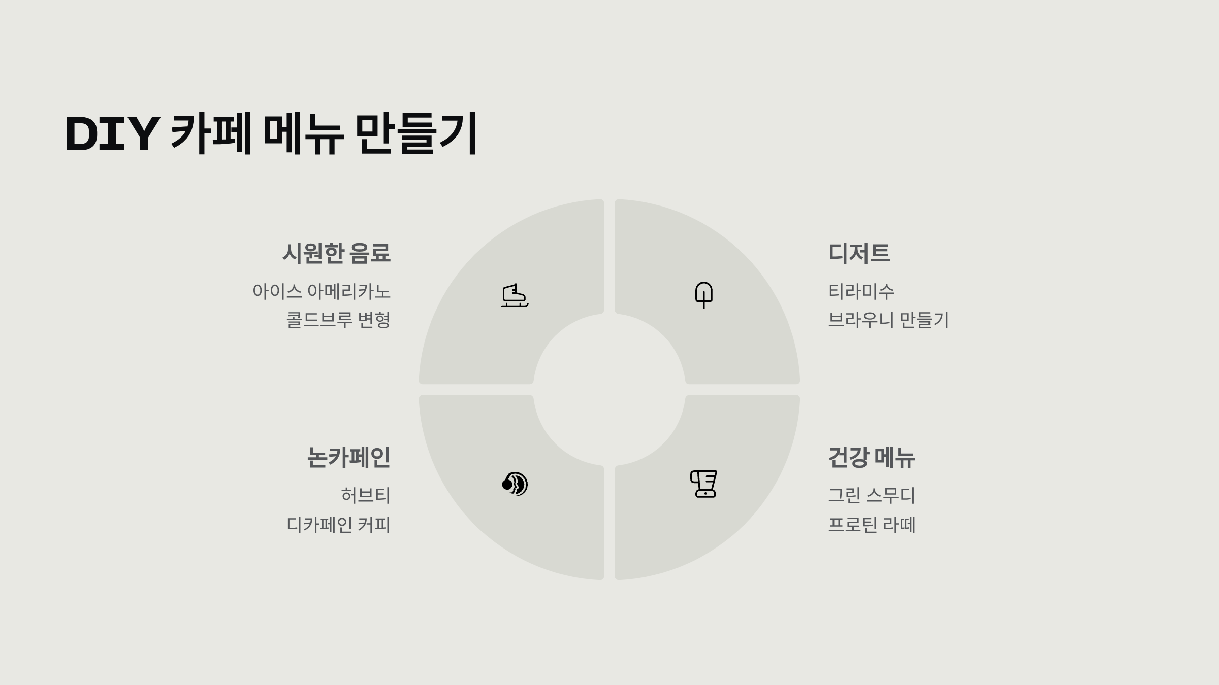 시즌 메뉴도 도전해 보세요. 여름엔 팥빙수 라테, 가을엔 밤 라테, 겨울엔 고구마 라테 등 계절 재료를 활용한 메뉴를 만들어보는 재미가 있어요. SNS에서 화제가 된 메뉴들도 레시피를 찾아서 따라 해 보면 의외로 쉽답니다.
