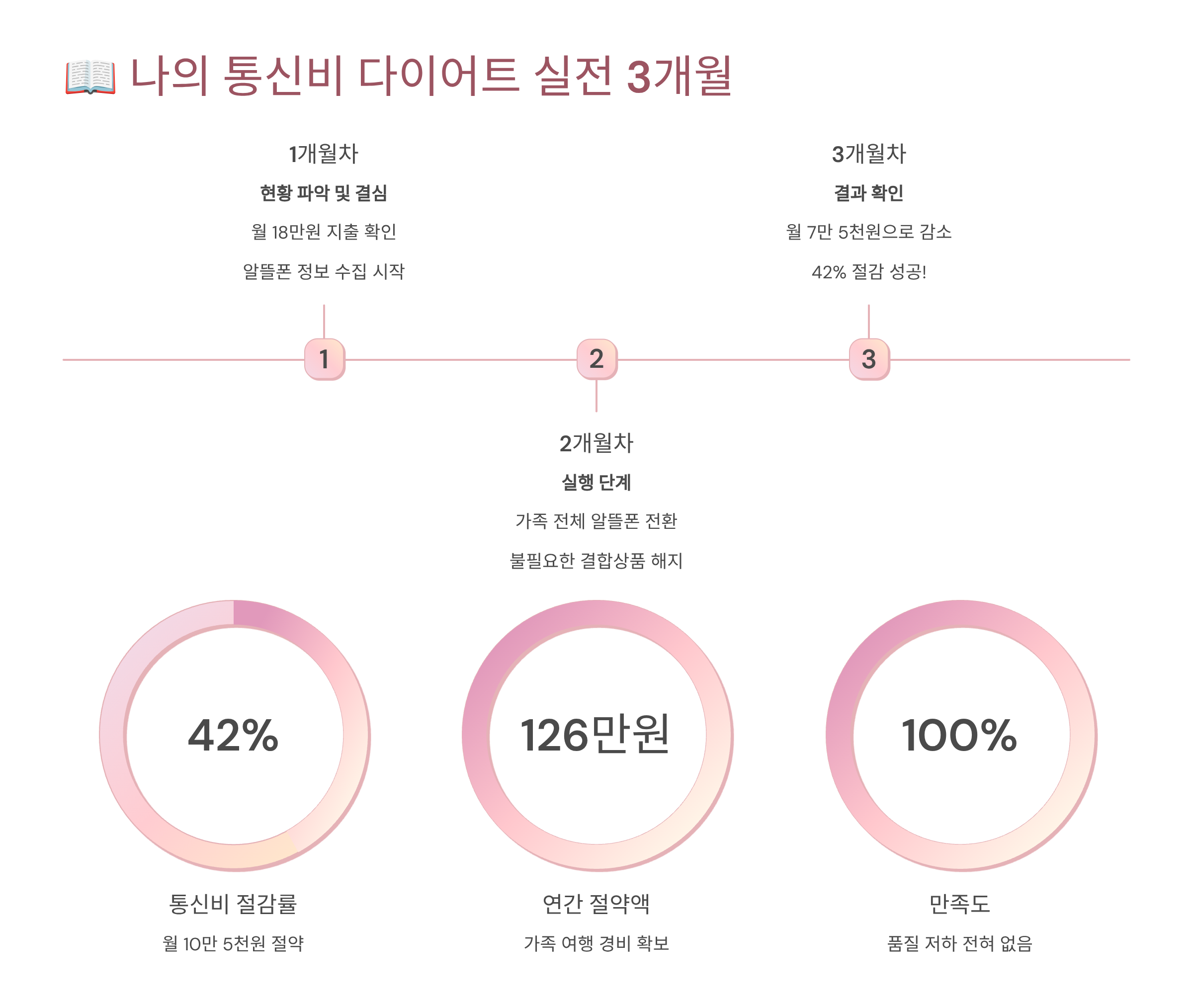 이렇게 3개월간 진행한 통신비 다이어트 결과, 월 126,730원에서 44,000원으로 줄었어요. 매달 82,730원, 연간으로 따지면 약 99만 원을 절약하게 된 거예요. 이 돈이면 1년에 해외여행 한 번 갈 수 있는 금액이에요.