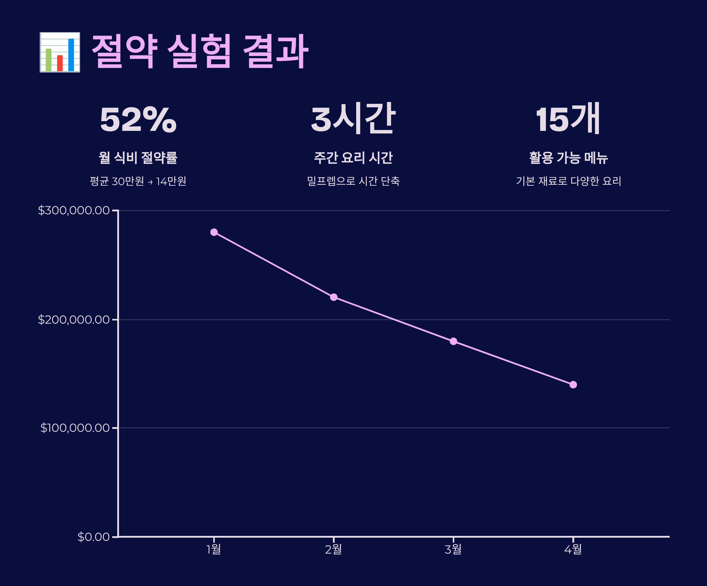 3개월간의 실험 결과, 월평균 식비를 40만 원에서 19만 원으로 줄일 수 있었어요. 첫 달은 적응 기간이라 25만 원 정도 들었지만, 두 번째 달부터는 안정적으로 20만 원 이하를 유지했답니다. 특히 외식비와 배달비가 월 10만 원에서 2만 원으로 대폭 감소했어요. 장보기 비용도 체계적인 계획으로 40% 절감할 수 있었죠.