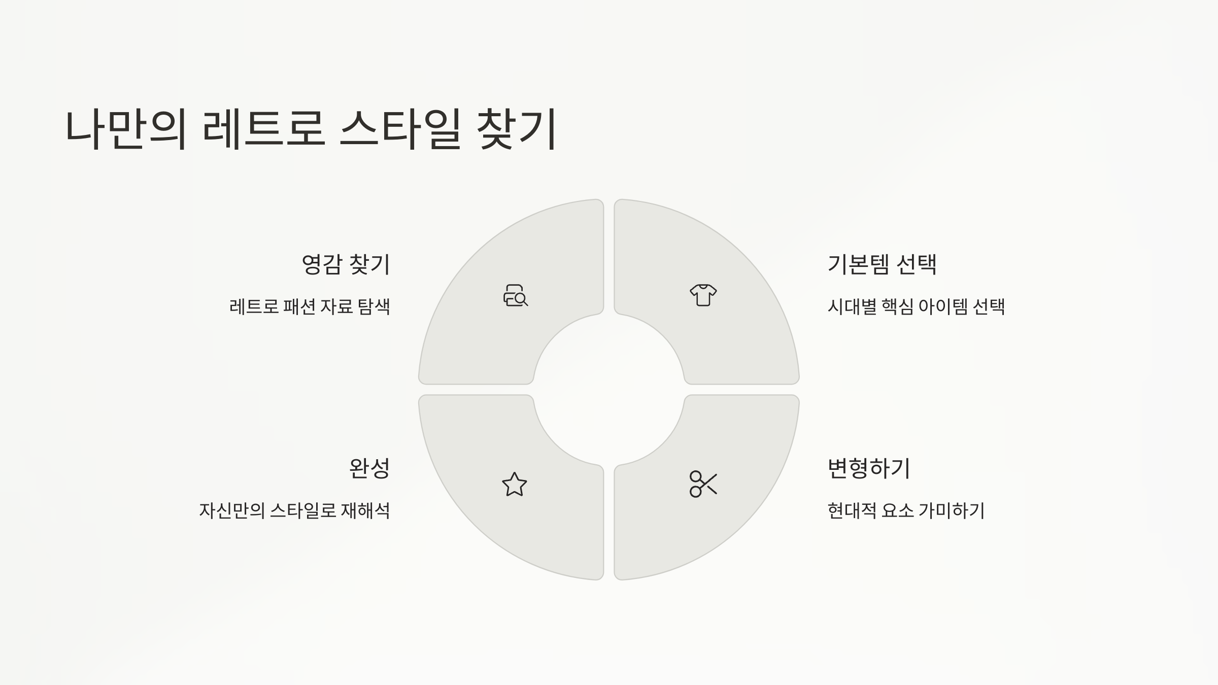 A8. 모든 체형에 어울리는 레트로 스타일이 있어요! 상체가 넓다면 70년대 보헤미안의 플로 위한 실루엣이 좋고, 하체가 넓다면 80년대 파워 슈트의 구조적인 어깨 라인이 균형을 맞춰줘요. 마른 체형이라면 Y2K의 레이어드 스타일로 볼륨감을 줄 수 있고, 통통한 체형은 90년대 그런지의 오버사이즈 스타일이 편안하면서도 스타일리시해요. 중요한 건 자신감 있게 입는 거예요!