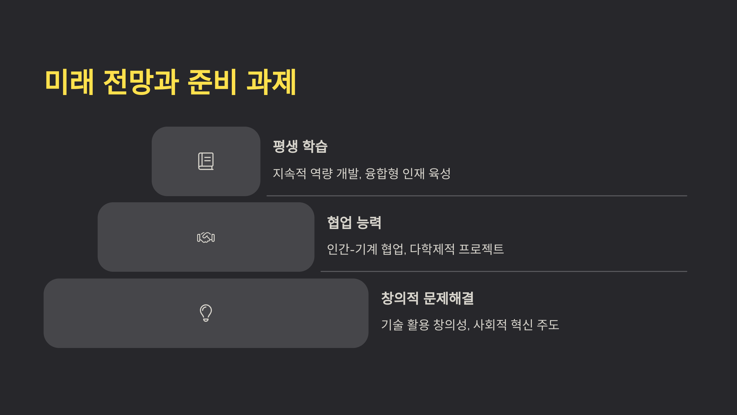 | 개인 | 평생학습 필수 | 지속적 역량 개발 |